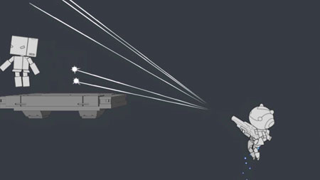 The Unity project ties the Gunman animations together with a character controller that is integrated with Unity's physics. This accepts input from the player and plays the animations at the correct times, resulting in the mechanics expected from a platformer jetpack game.